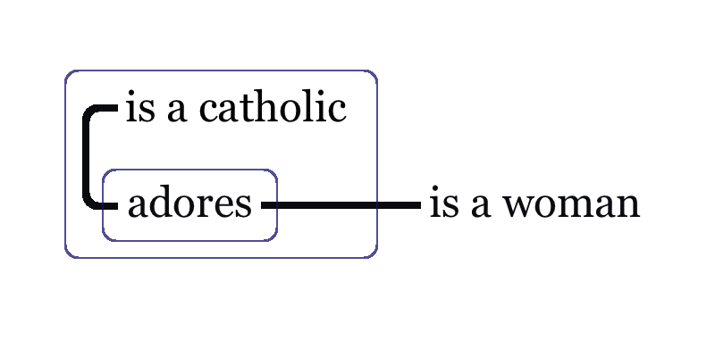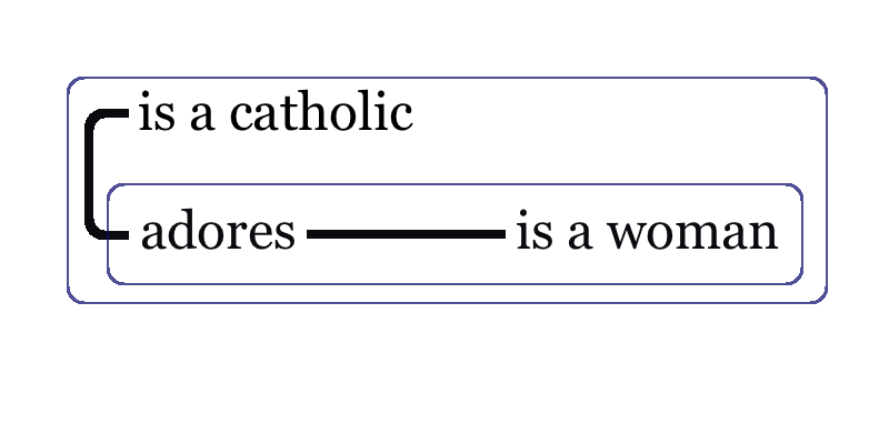 (4) A new operation on relatives, which Peirce termed transaddition (º) is then introduced (W4, p.204). Taking two relatives, such as being lover of___ (l) and being servant of___ (s), their relative product ls denotes whatever is lover of a servant of___. Their transaddition l º s denotes whatever is not a lover of everything but servants of___, that is, it denotes a complement of the complements of the relative product of the two terms l and s.